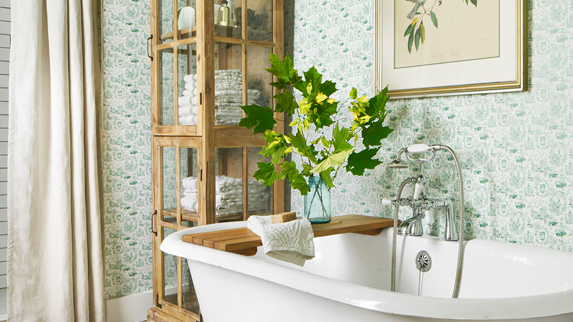 Step back in time as you enter this pretty bath. The hunter green shiplap ceiling and vintage black and white tile sets the nostalgic scene. The warm character found in these rustic alder bath cabinets have been crafted into fine furniture pieces that echo country charm.