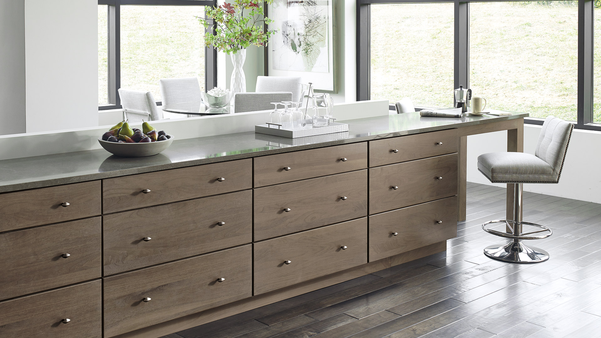 Seeking a look of contemporary class? Explore the clean, straight lines of Cayhill Walnut cabinets in Pumice for a space that exceeds modern expectations. Cohesive design and modern accents add just the refined finesse you're envisioning for a contemporary kitchen designed to stun.