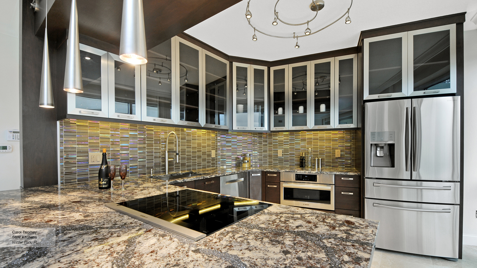 Set the standard for sleek urban living with aluminum frame doors and a polished set of accents and embellishments. Pair these with a warm finish like Kodiak on Tarin Walnut kitchen cabinets to create a space that is equal parts contemporary and inviting.