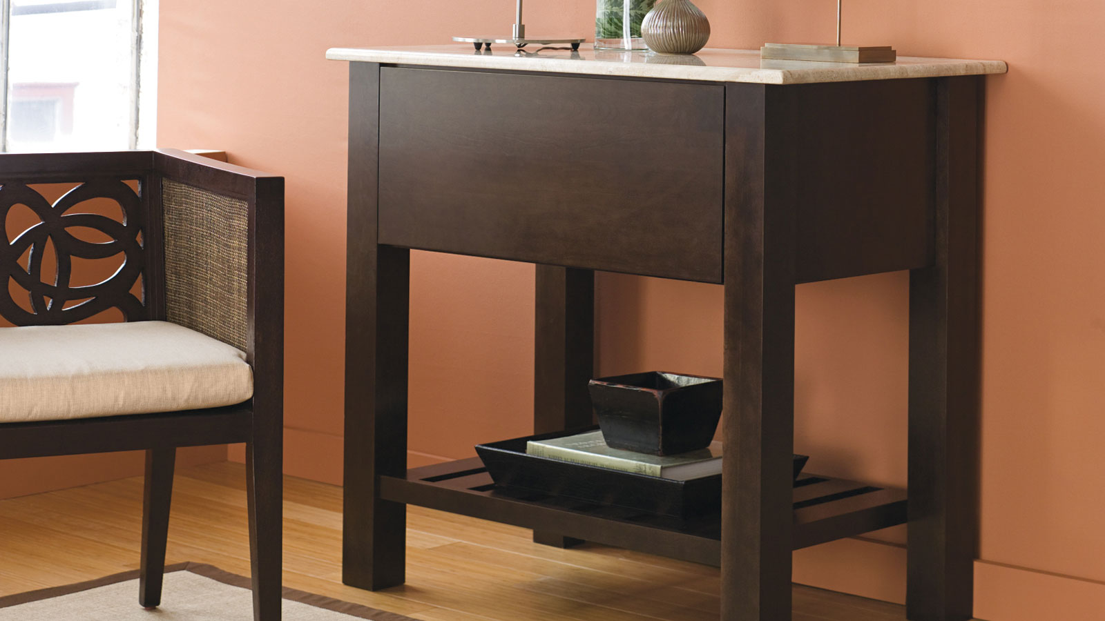 Creating furniture pieces, like this console cabinet, is an easy way to carry a design theme straight from the kitchen to the rest of your home. With similarity in style and finish, what better way to create complete home coordination.
