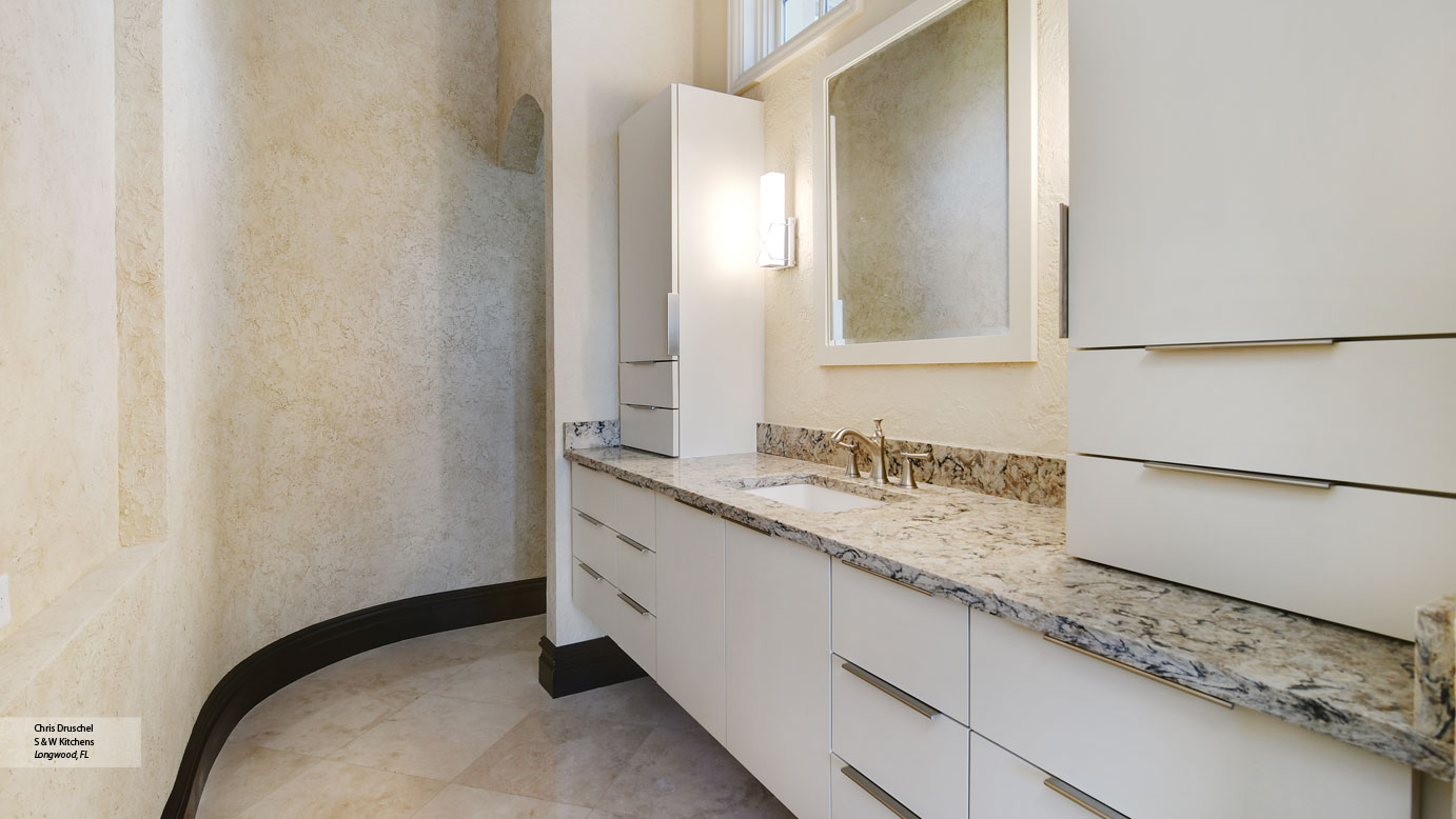 These sleek slab cabinet doors are the perfect finishing touch to any modern bathroom. Top off your look with a clean Dove Finish, or go for a warmer look with our Smokey Hills. Either way, your primary bath will have you feeling like you're in a calming oasis.